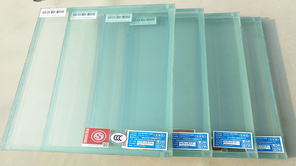 用于建筑外窗或者外墙时,隔热型防火玻璃可以与其他如浮法玻璃、阳光控制玻璃等进行组合,制成具有防火作用的多功能中空玻璃。